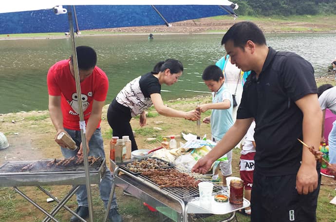 2015年6月21日,天氣晴好,氣候宜人,公司員工在毛利水庫旁進行野外燒烤。眾人合力動手準備材料,有的人負責串食材,有的負責烤,有的人負責搭帳篷,有的人打下手,一幅生機勃勃的景象。這一天大家吃的開心,玩的開心。